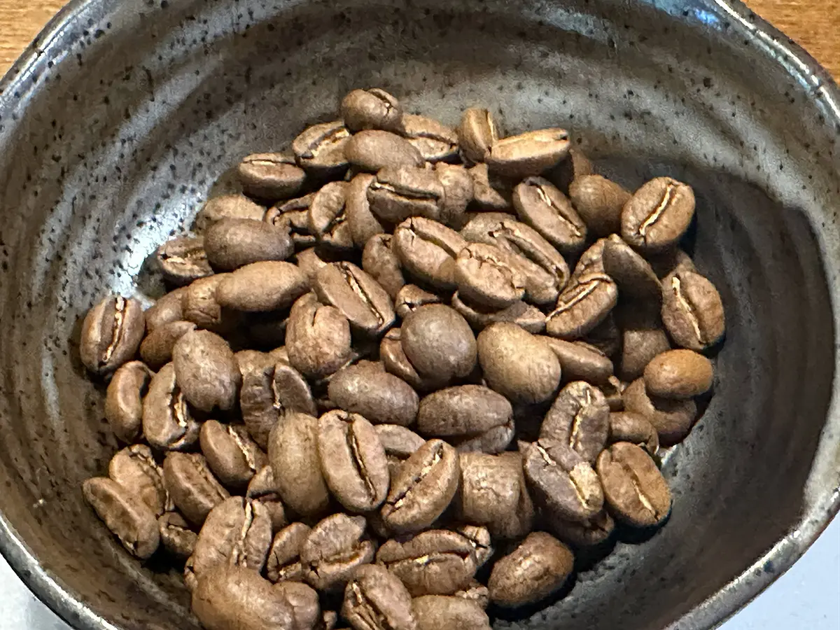 ゲイシャ種特有の、やや細長い形状(ロングベリー)が見て取れます。今回の豆は欠点豆もほぼなく、非常に美しい仕上がりでした。規格もExcelso(エクセレソ)でコロンビアらしい大粒でおいしいコーヒーでした。ミディアムローストにちゃんと焼けていて美味しかったです。